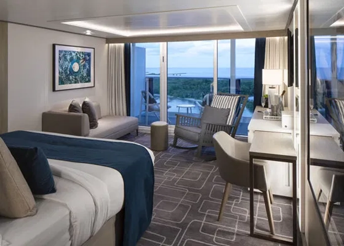 CS - Celebrity Suite 37 m² + balkón 9 m². 11/12. paluba. Max 4 osoby. Výhody Suite Retreat. 24 472 € 12 236 € za osobu