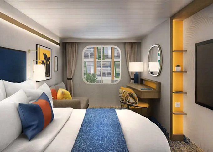 | T5 - Vnútorná kajuta s oknom / Surfside Family 17 m². Neotvárateľné okno s výhľadom na štvrť Surfside. 8. paluba vpredu. Max 4 osoby. | 3 355 € 3 355 € za osobu | ||