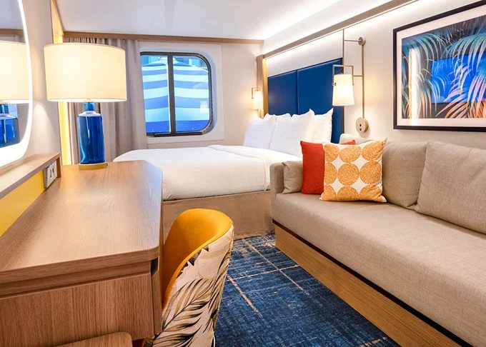 | T5 - Vnútorná kajuta s oknom / Surfside Family 17 m². Neotvárateľné okno s výhľadom na štvrť Surfside. 8. paluba vpredu. Max 4 osoby. | 4 038 € 1 346 € za osobu | ||