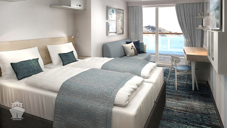 | BAHO - Kajuta s balkónom kat. H 17 m² + balkón 5 m² s obmedzeným výhľadom. 6-9. paluba. Max 3 osoby. | 6 378 € 2 126 € za osobu |