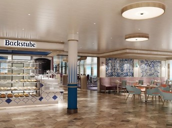 - Značkové nápoje na palube (nealkoholické nápoje, pivo, sekt, víno, koktaily, long drinky, liehoviny, kávové špeciality) počas celého dňa v reštauráciách, baroch a salónoch